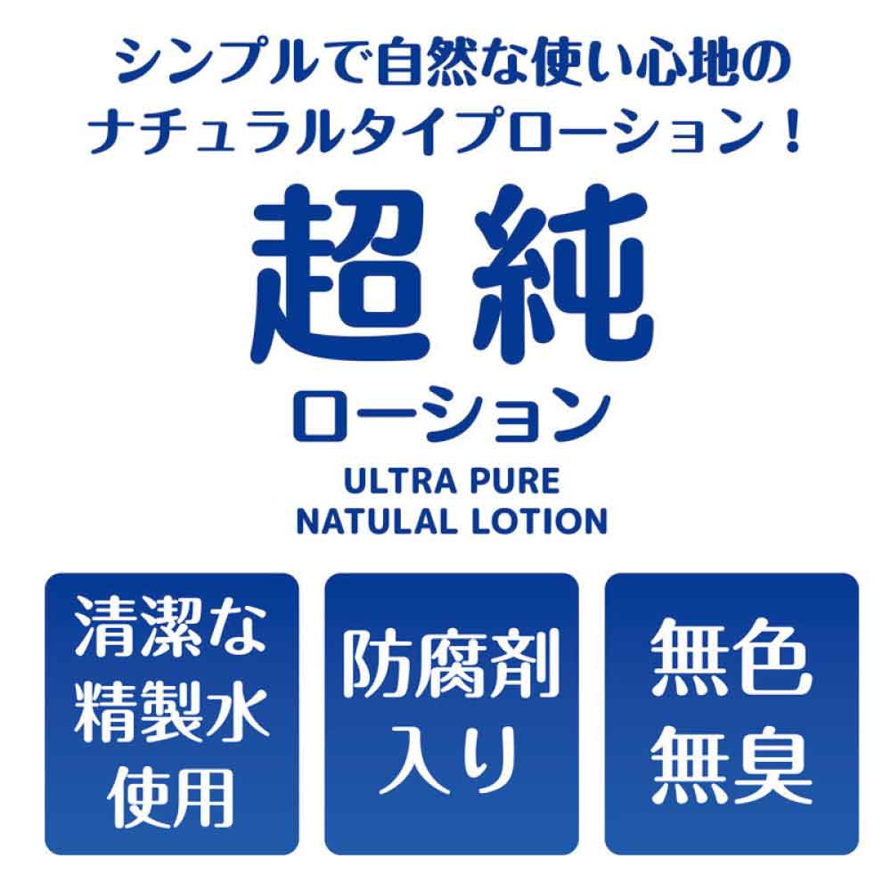 「どこまでも自然」をモットーに作られた万能型ローションです。ありとあらゆる場面で活躍してくれる定番商品としてオススメです。ローション選びに迷ったら超純で間違いなし!●150ml