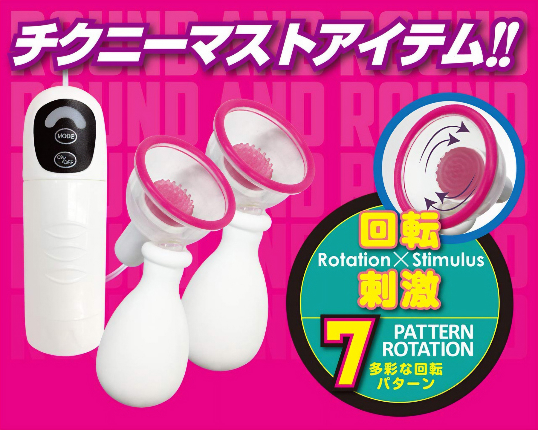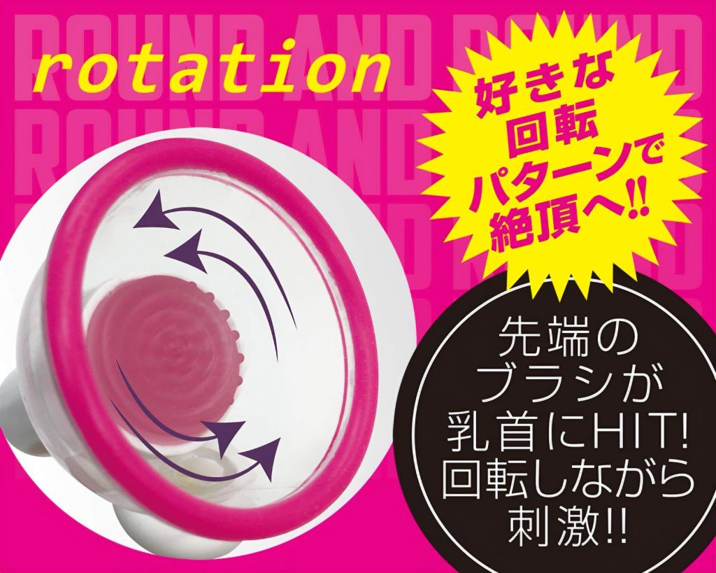 男女兼用で誰でも簡単に乳首開発ができる!吸引しながら強力回転するブラシ突起が魅力的♪カップ部分を乳首に当てて、ポンプで吸引することで真空状態が作り出せるニップルローターです。お好きな吸い付きたいところで電源をオン!乳頭にブラシがヒットしながら回転して刺激。7パターン(スピード3段階)の多彩な回転アクションで、自由自在にお好きに乳首責めが楽しめちゃいます♪