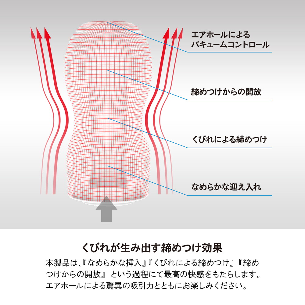 人気のTENGAシリーズに「テンガオリジナルバキュームカップエクストラソフト」が仲間入り!これはテンガ史上最もソフトなゲル仕様のオナカップです。通常のソフト・ハードタイプでは物足りない方のために開発された特別なバキュームカップで、ソフトな素材と細かな螺旋ヒダが優しい絡みつきを提供します♪極小の突起と滑らかなエッジがあなたのムスコを包み込み、繊細で優しい刺激で快感へと導きます。テンガカップシリーズ史上、最も柔らかいテンガ エクストラソフトの究極の快感をお楽しみください!